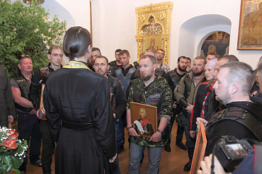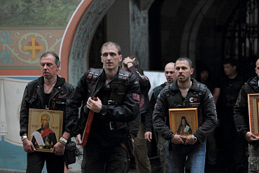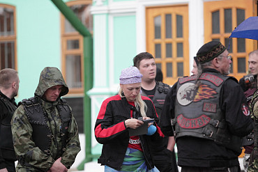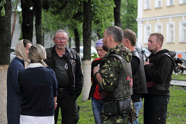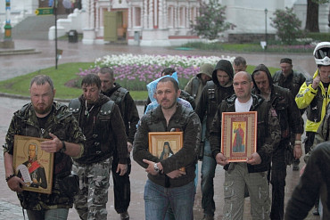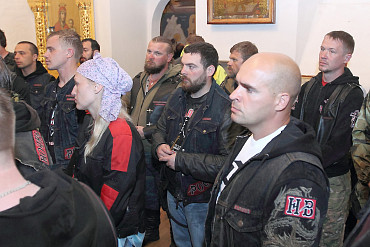 Более 50 байкеров, принимающих участие в ежегодном мотопаломничестве «Русский путь», прибыли в подмосковный Сергиев Посад вечером в пятницу, 29 мая 2015 года. Фото: пресс-служба Лавры.