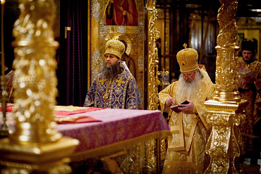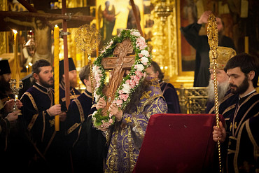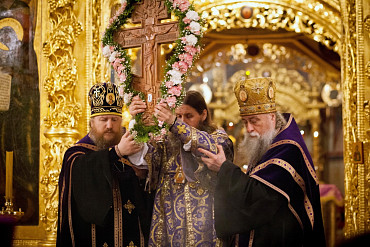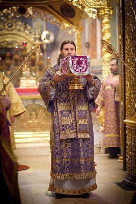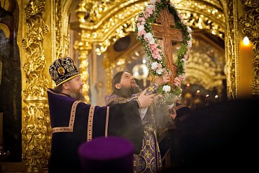 Всенощное бдение с чином выноса Креста Господня и Литургия Крестопоклонной недели в Троице-Сергиевой Лавре