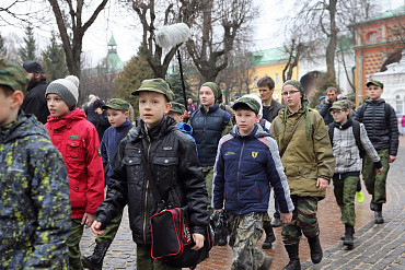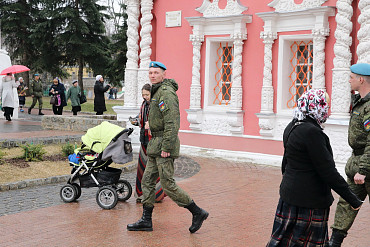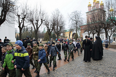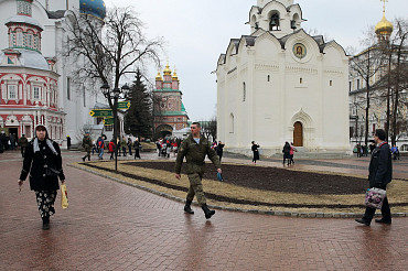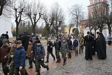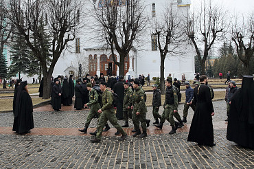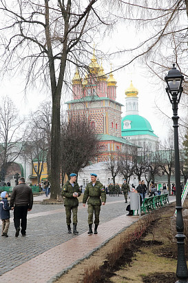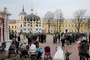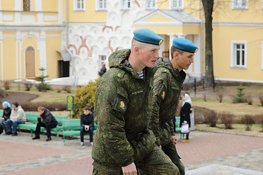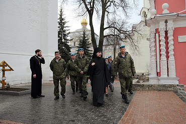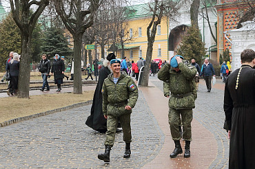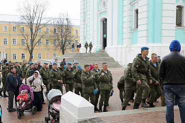 10 апреля 2016 года курсанты Рязанского высшего воздушно-десантного командного училища им. генерала армии В.Ф. Маргелова посетили Свято-Троице-Сергиеву Лавру. Фото: пресс-служба Лавры.