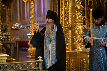 27 августа 2016 года, в канун праздника Успения Пресвятой Богородицы, архиепископ Сергиево-Посадский Феогност совершил всенощное бдение в Успенском соборе Троице-Сергиевой Лавры. Фото: пресс-служба Лавры.