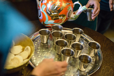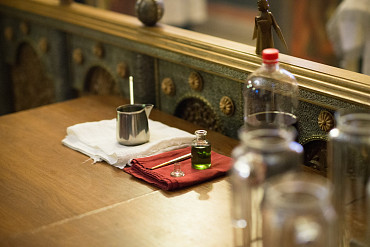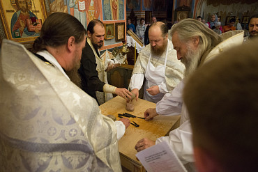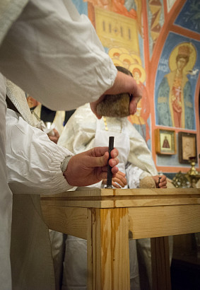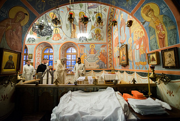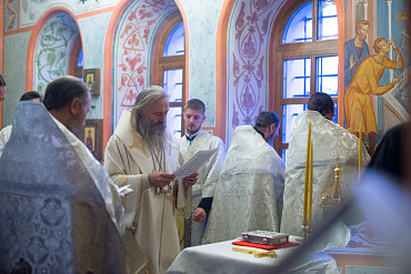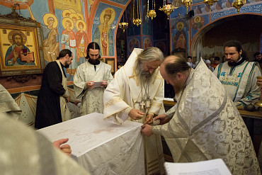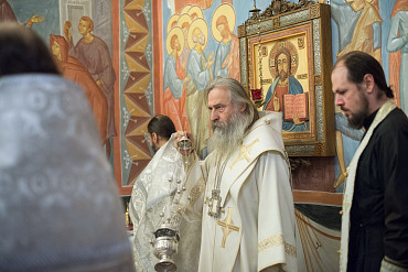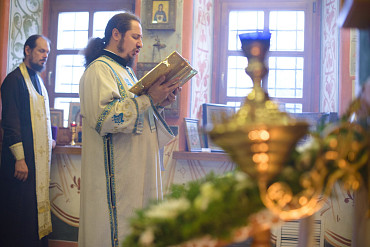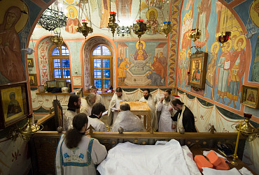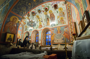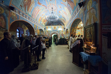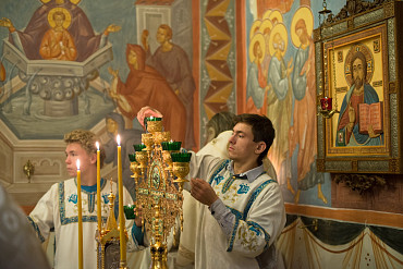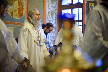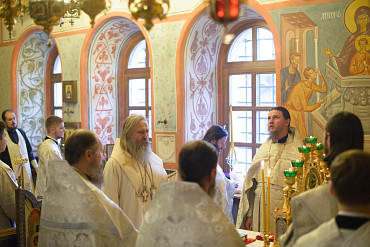 Архиепископ Феогност освятил придел храма в честь Явления Пресвятой Богородицы прп. Сергию Радонежскому на подворье Троице-Сергиевой Лавры и совершил в нем Божественную литургию. Фото: C. Константинов, МДА. 15 октября 2016 год.
