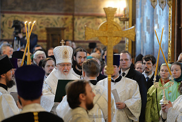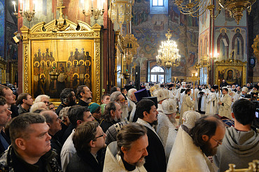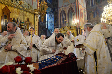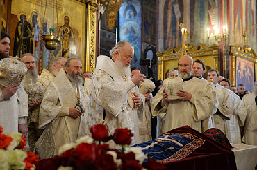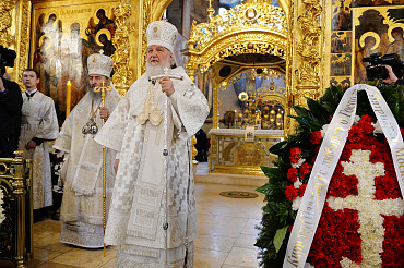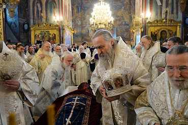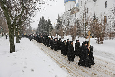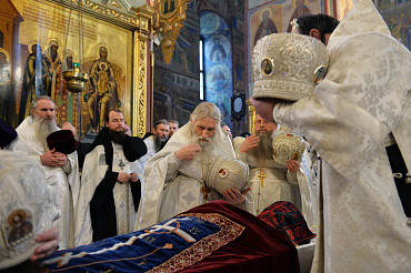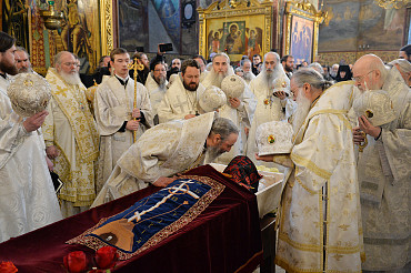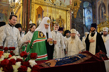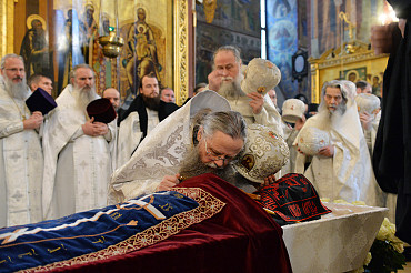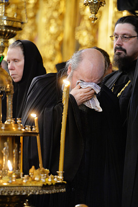 23 февраля 2017 года в Успенском соборе Свято-Троицкой Сергиевой лавры Святейший Патриарх Московский и всея Руси Кирилл совершил чин отпевания архимандрита Кирилла (Павлова). Фото: священник Игорь Палкин, В. Нестеренко, В. Пархоменко. Источник: Пресс-служба Патриарха Московского и всея Руси.