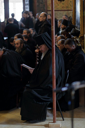 30 марта, в четверток Великого канона, в Успенском соборе обители Преподобного Сергия была отслужена Литургия Преждеосвященных Даров, которую возглавил насельник Свято-Троицкой Сергиевой Лавры архимандрит Илия (Рейзмир) в сослужении монастырской братии в священном сане. Накануне, 29 марта 2017 года, в среду 5-й седмицы Великого поста, за вечерним богослужением – утреней четверга – в Успенском соборе Свято-Троицкой Сергиевой Лавры наместник обители архиепископ Сергиево-Посадский Феогност с монастырской братией в священном сане совершил чтение Великого канона прп. Андрея Критского. // Фото: пресс-служба Лавры, 29 и 30 марта 2017 год