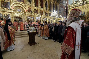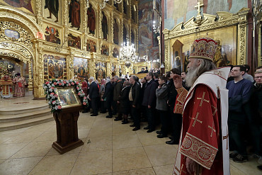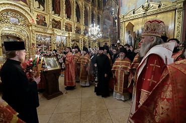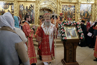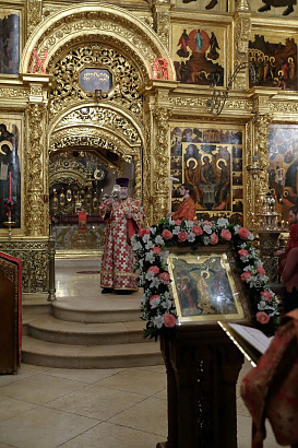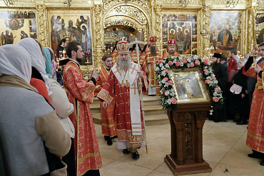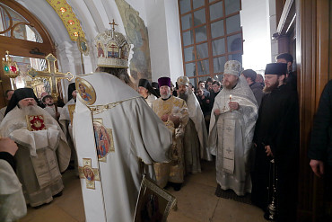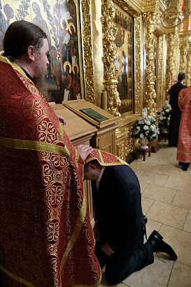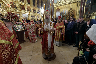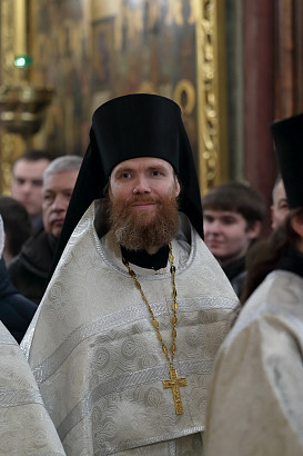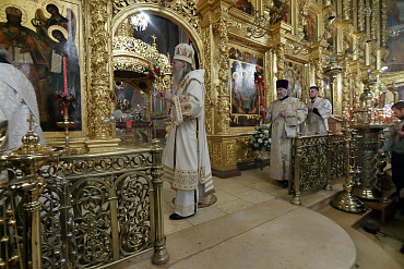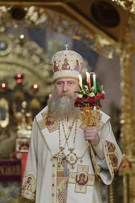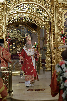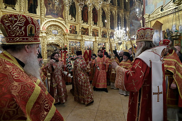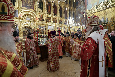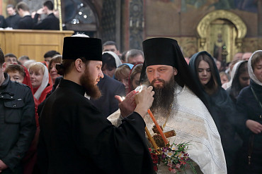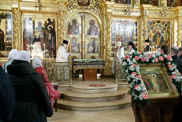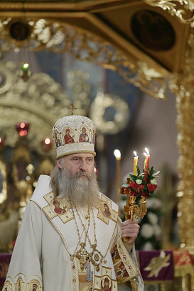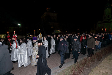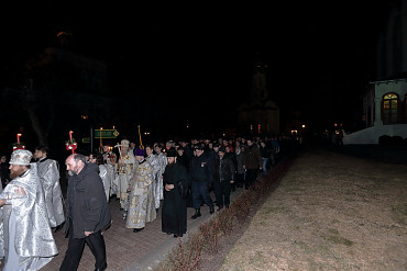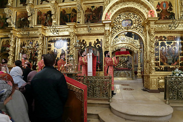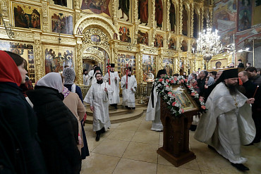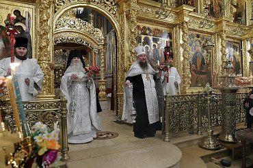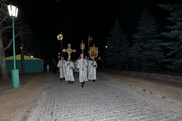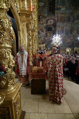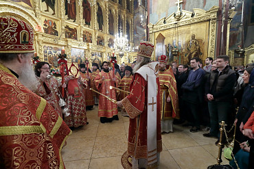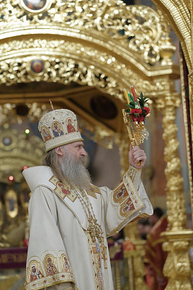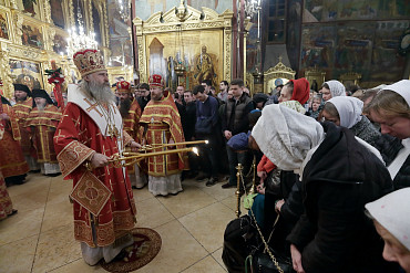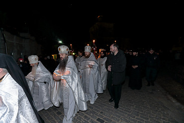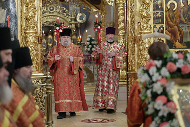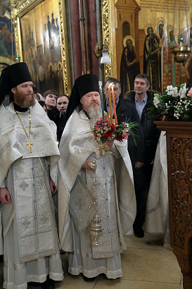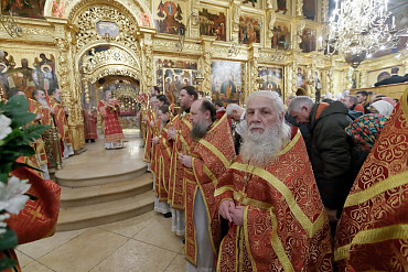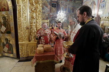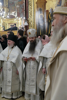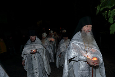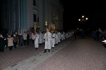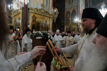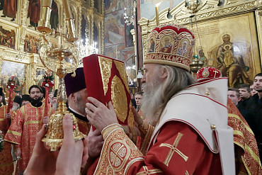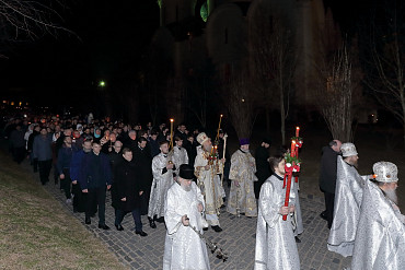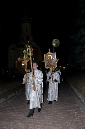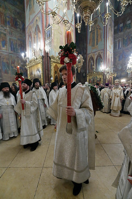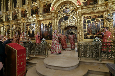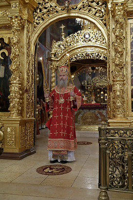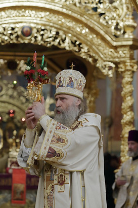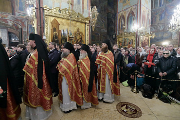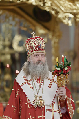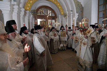 Ночное Пасхальное богослужение в Успенском соборе обители возглавил наместник Свято-Троицкой Сергиевой Лавры архиепископ Сергиево-Посадский Феогност.