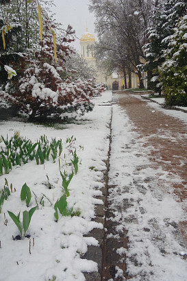 Лавра в цвету и в снегу