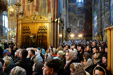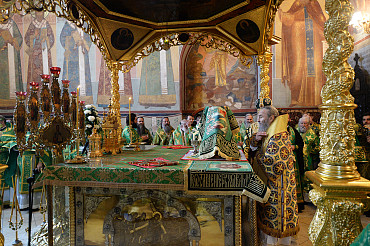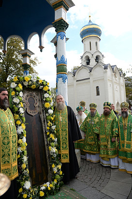 8 октября 2017 года, в день преставления преподобного Сергия, игумена Радонежского, всея России чудотворца, Святейший Патриарх Московский и всея Руси Кирилл совершил Божественную литургию в Успенском соборе Свято-Троицкой Сергиевой лавры.