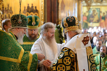 В тот же день в Патриарших покоях Лавры Святейший Патриарх вручил церковные награды ряду архиереев, отмечающих в этом году юбилейные даты.