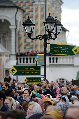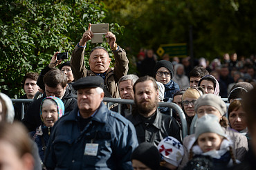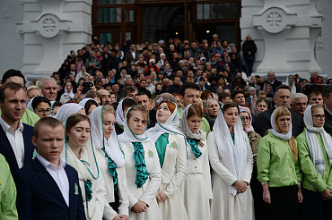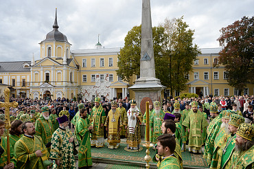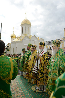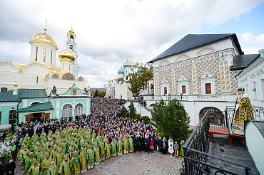 По окончании Литургии Предстоятель Русской Церкви и все архипастыри, совершавшие в этот день богослужения в Лавре, вышли крестным ходом на площадь, где был совершен молебен преподобному Сергию. После молебна Святейший Владыка с балкона Патриарших покоев обратился к участникам торжеств с Первосвятительским словом.