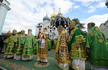 Патриаршее служение в день преставления преподобного Сергия Радонежского в Троице-Сергиевой Лавре