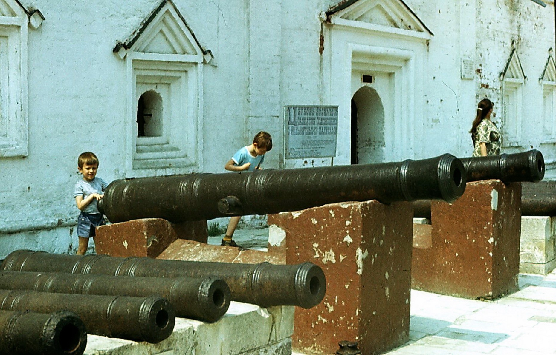 Пушки, защищавшие монастырь, у храма преподобных Засимы и Савватия. Фото 1984 гг.