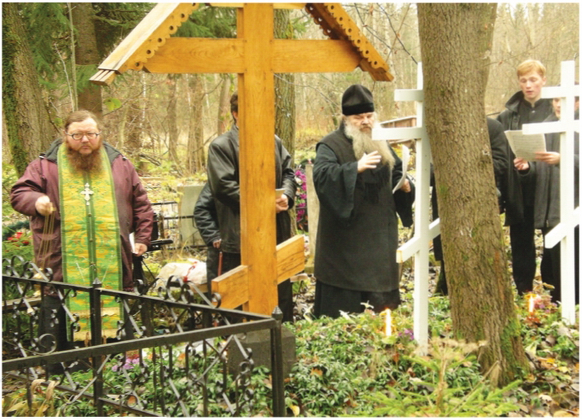 Панихида по диак. Сергию Трубачеву на Благовещенском кладбище Сергиева Посада. 2004 г.