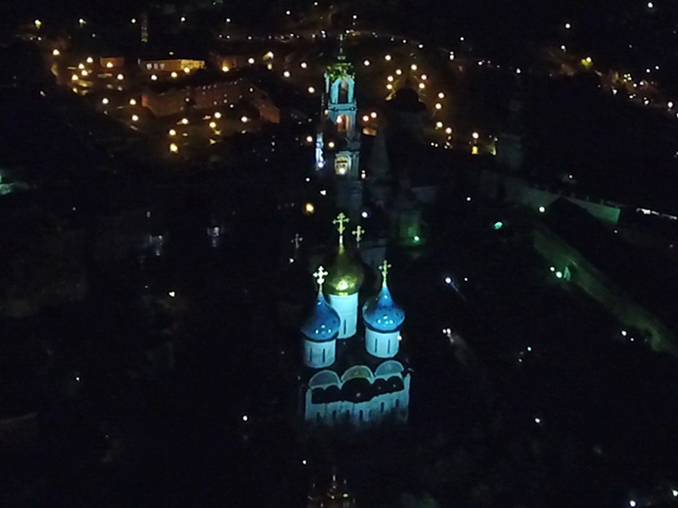 6 (19 по н.ст.) апреля 1913 г., на Пасху последнего предвоенного года (перед Первой мировой войной), жители Сергиевского посада и многочисленные паломники стали свидетелями иллюминации, устроенной на колокольне Троице-Сергиевой Лавры. Колокольня была иллюминирована полутора тысячью электрических лампочек красного, синего и зеленого цветов.