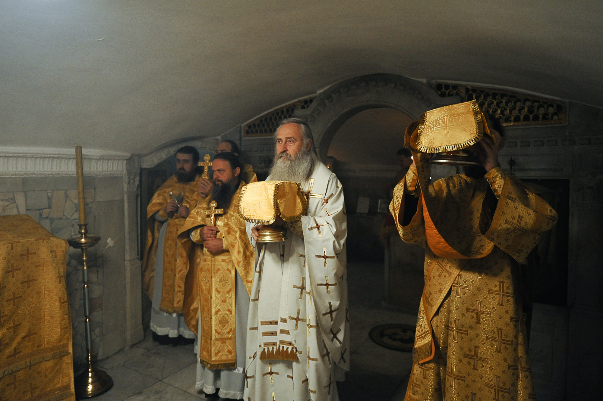 9 сентября, в день тезоименитства Патриарха Московского и всея Руси Пимена, архиепископ Каширский Феогност совершил Божественную литургию в крипте Успенского собора Лавры.