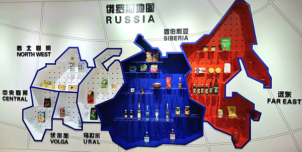 Русский павильон в Шанхае, расположенный на территории современного выставочного комплекса, разместил на своей площадке самые разные продукты питания, произведенные в России.