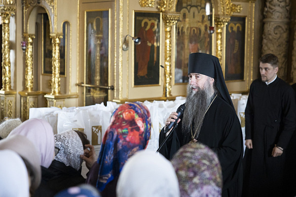 Преосвященный владыка обратился ко всем присутствующим с архипастырским словом по случаю праздника Светлого Христова Воскресения и вручил памятные подарки.