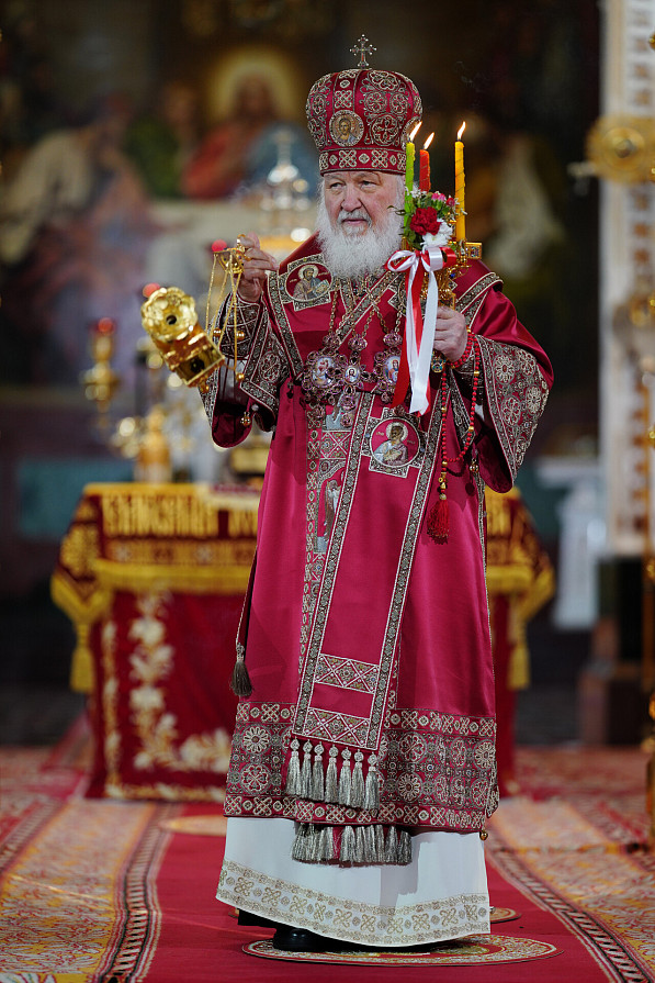 12 апреля 2026 года, в праздник Светлого Христова Воскресения, Святейший Патриарх Московский и всея Руси Кирилл совершил пасхальную Великую вечерню в кафедральном соборном Храме Христа Спасителя в Москве.