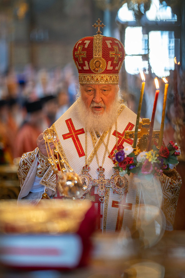 В Успенском соборе Предстоятель Русской Православной Церкви возглавил служение Божественной литургии. Его Святейшеству сослужил наместник обители епископ Сергиево-Посадский и Дмитровский Кирилл, преосвященные архипастыри, насельники Лавры и духовенство г. Москвы.