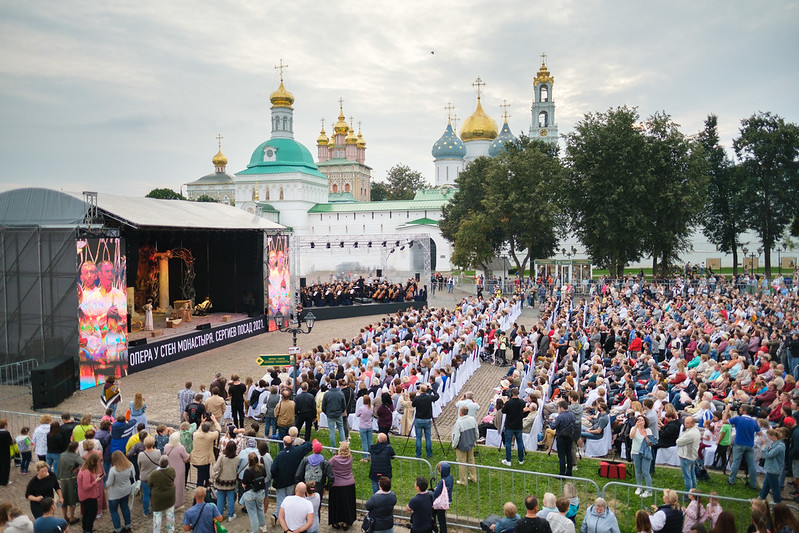 29 августа на площади у стен Свято-Троицкой Сергиевой Лавры театр «Геликон-опера» представил оперу П.И. Чайковского «Евгений Онегин» в постановке генерального директора и художественного руководителя театра Дмитрия Бертмана.