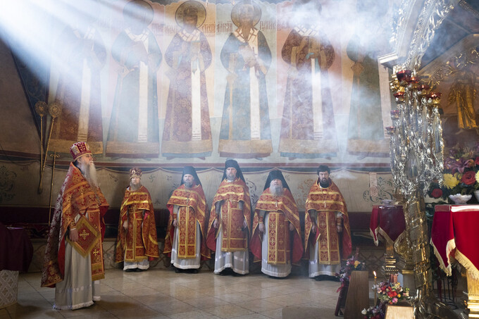 Позднюю Литургию в Успенском соборе Лавры возглавил архимандрит Дорофей (Островский). За богослужением пел хор под управлением Евгения Боровинского.