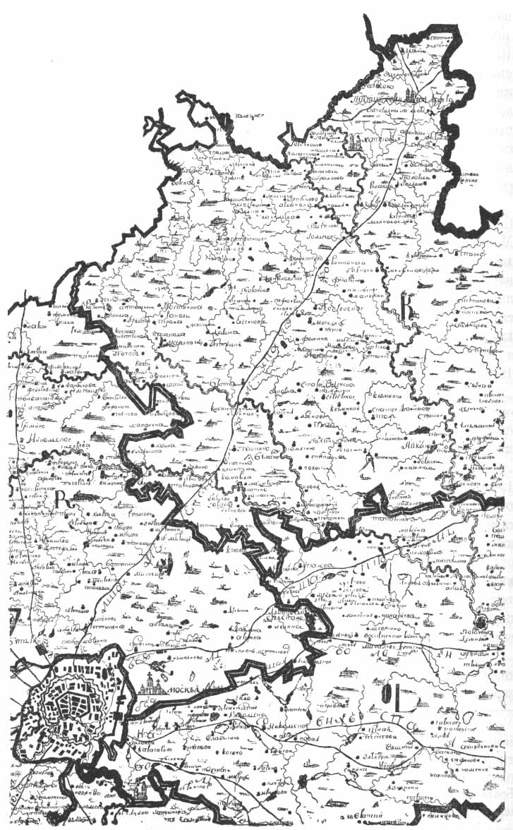Илл. на стр. 390. Карта XVIII в. местности между Москвой и Троице-Сергиевым монастырем