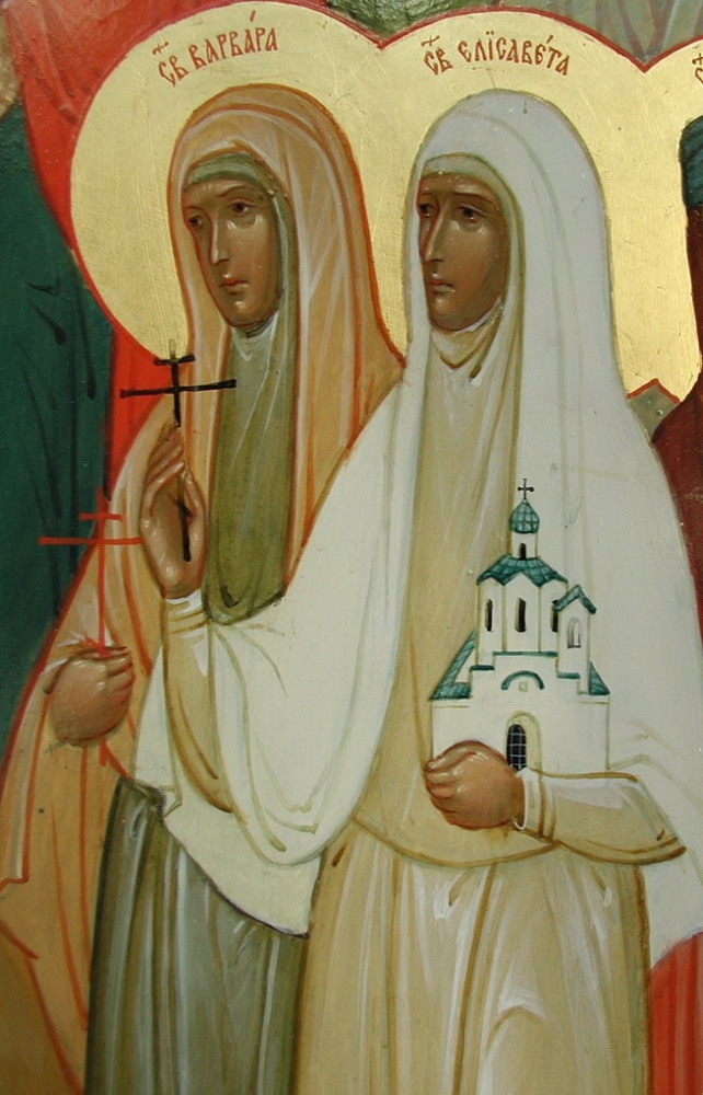 О святыя новомученицы Российския великая княгине Елисавето и сестро ея крестовая пречестная инокине Варваро, купно путь свой во мнозех муках скончавшия, евангельския заповеди делом во Обители милосердия совершившия, веры ради православныя подвизающися до смерти в последняя времена сия, и добрый плод в терпении страстей Христу принесшия! Молитеся Ему, яко победителю смерти, да утвердит Церковь Русскую Православную и отечество наше, кровию и страданьми новомучеников искупленныя, и не даст в расхищение врагом России достояния нашего. Се бо лукавый враг вооружися на ны, хотя нас погубити в междоусобных бранех, скорбех, нестерпимых печалех, болезнех, нуждах и бедах лютых. Умолите Господа низложити вся немощныя дерзости их; веру в сердцах людей российских укрепите, да егда найдет на ны испытания час, мужества дар восприимем вашими молитвами, отвергшеся себе и вземше крест свой, последуем, Христу, распинающе плоть свою со страстьми и похотьми. Сохраните нас от всякаго зла, освятите пути жизни нашея, даруйте покаяние нелицемерное, тишину и мир душам нашим, испросите у Господа всем нам мытарств горьких и вечныя муки избавитися и Небесному Царствию наследники быти со всеми святыми, от века угодившими Богу, да радующеся воздадим хвалу, честь и поклонение Отцу и Сыну и Святому Духу во веки веков. Аминь.