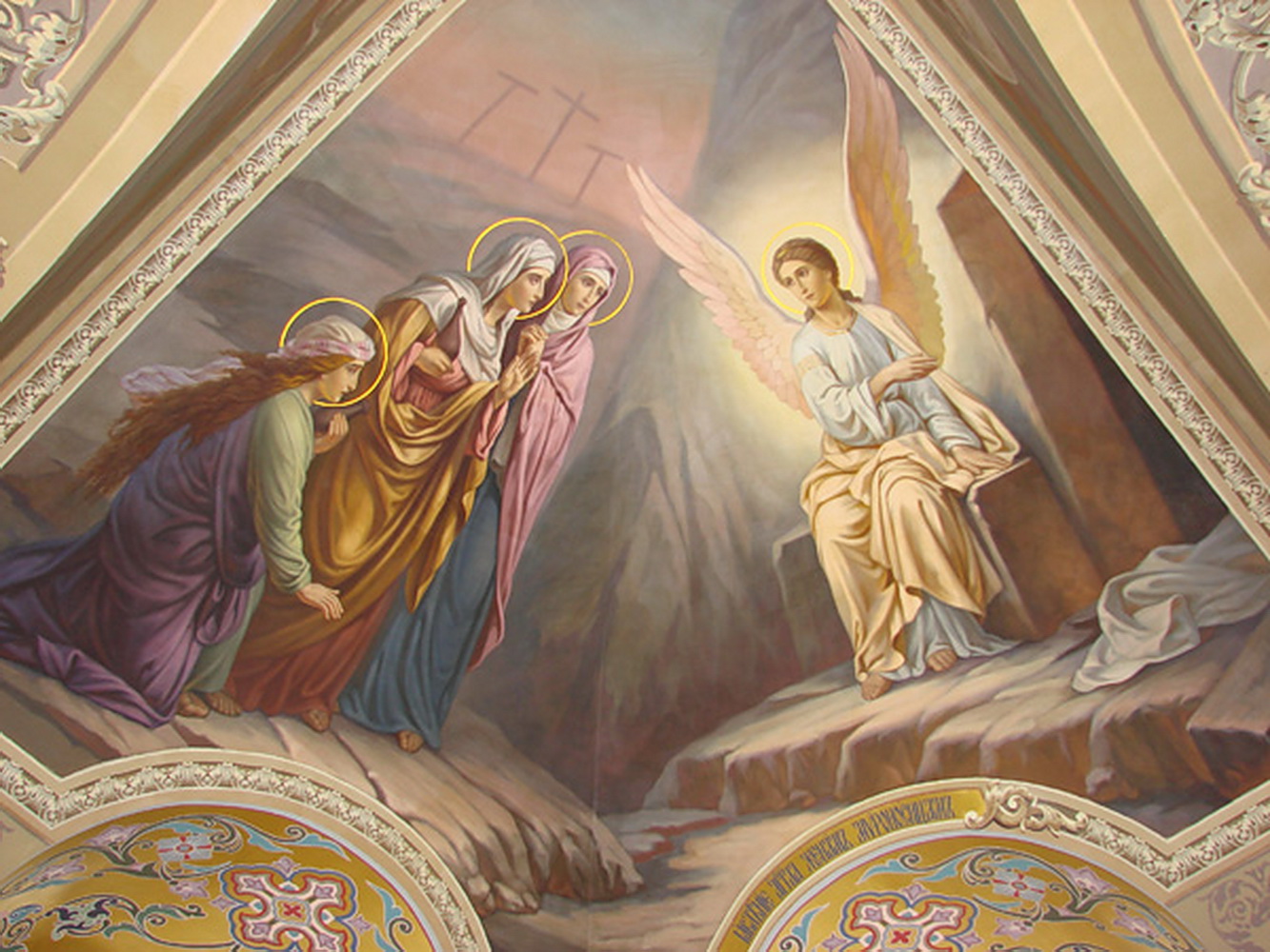 Мироносицы – носящие миро. Это те женщины, как вы знаете, которые в ночь Воскресения Христова спешили ко Гробу Господню с миром в руках, чтобы по восточному обычаю возлить благовонные ароматы на бездыханное Тело своего Божественного Учителя.