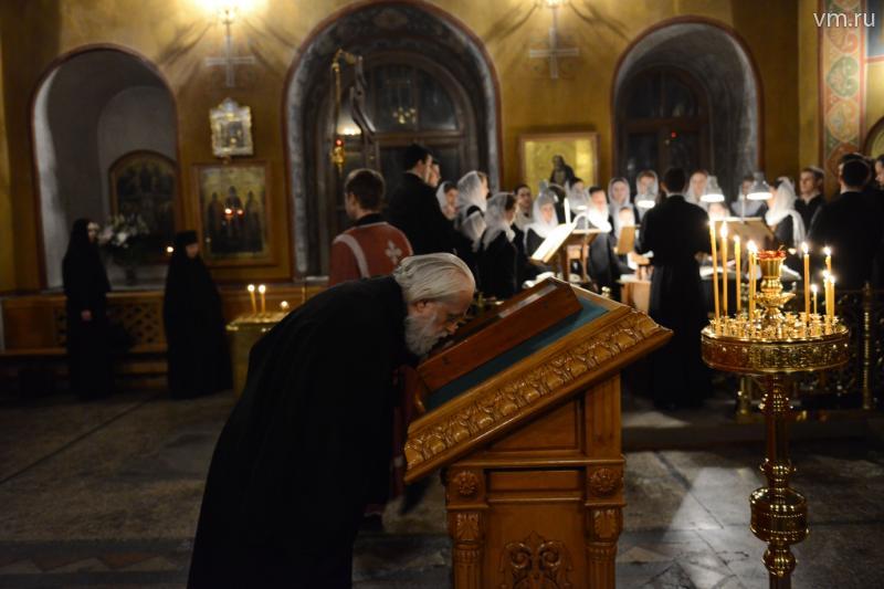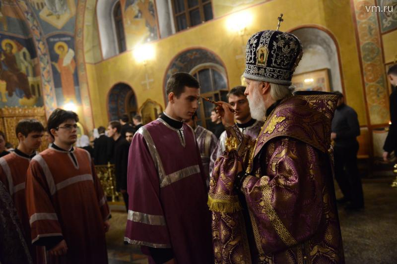 На помазание во время службы к архиепископу выстраивается очередь