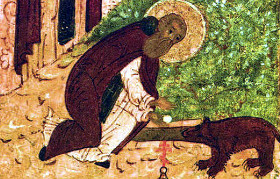 Мы уже видели примеры прозорливости Преподобного Сергия. Вот еще один. Однажды друг его, святитель Стефан Пермский, великий миссионер, спешил в Москву и не мог заехать в обитель св. Сергия. В десяти верстах от обители святитель помолился, поклонился в сторону обители и сказал: «Мир тебе, духовный брат мой!» В этот момент св. Сергий, сидевший за трапезой, встал, помолился и поклонился в ту сторону, где проезжал святитель Стефан, со словами: «Радуйся и ты, пастырь Христова стада, и мир Божий да пребывает с тобою!»
