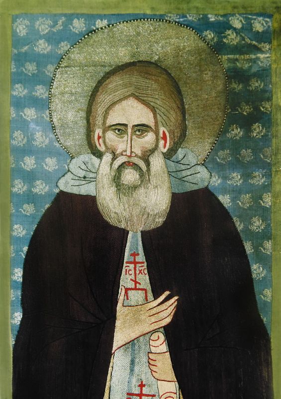 По обилию и разнообразию иконографических сюжетов преподобный Сергий Радонежский не имеет равных среди святых, прославленных в Русской Церкви. Самые ранние изображения преподобного появились уже в начале XV в. Из дошедших до нашего времени изображений древнейшим является, очевидно, покров со святых мощей преподобного, датируемый двадцатыми годами XV в. (Сергиево-Посадский госуд. историко-художественный музей-заповедник). Лицевое шитье достаточно точно передает портретные черты преподобного; во всяком случае, близкие по времени иконографические сюжеты с преподобным это портретное сходство в большей или меньшей степени учитывают. Надо отметить, что более поздние (уже середины XV в.) покровы с мощей преподобного Сергия впечатления портретного сходства уже не оставляют.