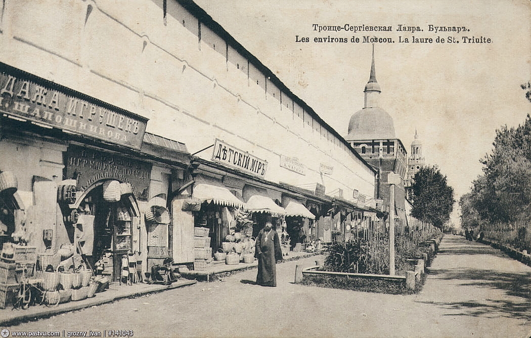 На рубеже XIX-XX вв. вдоль восточной крепостной стены Троице-Сергиевой Лавры сформировался целый ряд многочисленных лавок, торговавших детскими игрушками: резными деревянными, механическими, бумажными и прочими.