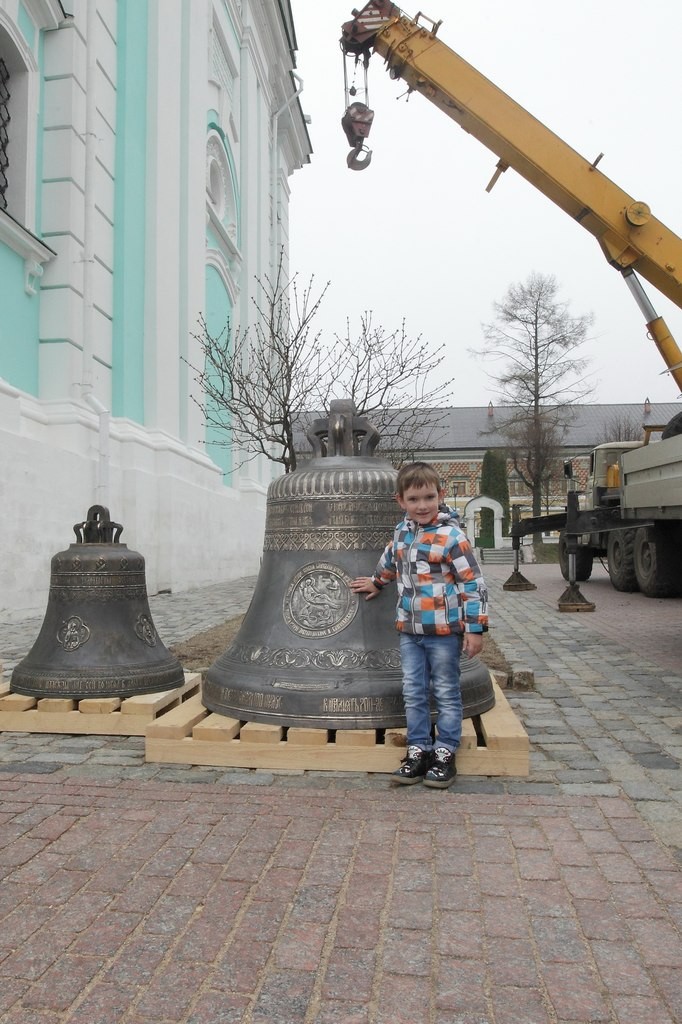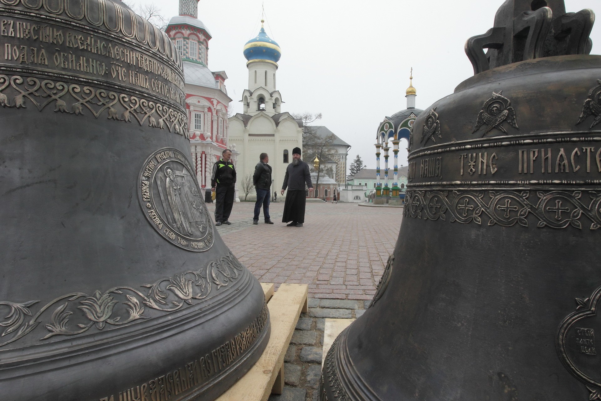 На Соборной площади Свято-Троицкой Сергиевой Лавры возле колокольни со стороны Успенского собора на специальных помостах стоят два красивых колокола, дожидаясь, когда их поднимут на колокольню, чтобы своим звоном дополнить звуковую палитру Лаврской звонницы. Привезли их недавно, скоро прибудет и еще один колокол, меньший по величине.