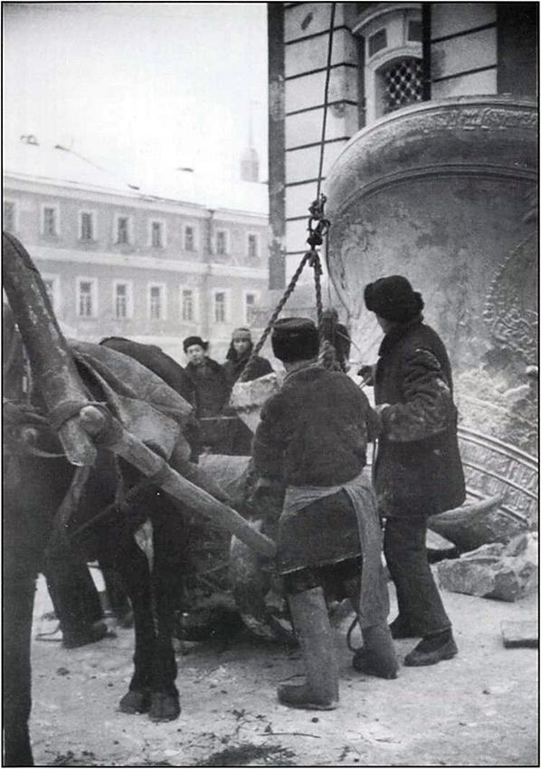 9. Колокол «Годунов», или «Цареборисов», подготовленный к сбросу с колокольни.