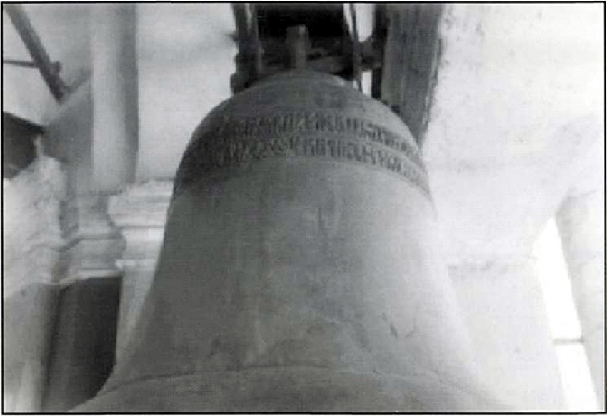 Об этом же событии, но более подробно рассказывается одним из приезжих иностранцев Уильямом Парри во время проезда его через Россию в составе персидского посольства в 1599–1600 гг. По его рассказу, вся пышная процессия с царской фамилией во главе сопровождалась при выезде из Москвы царской гвардией в 500 человек, множеством монахов, самим Патриархом с архиепископами и епископами и тремя огромными каретами, запряженными белыми лошадьми. А сам же колокол везли 3500 человек по дымящимся от трения деревянным мостовым Москвы. Вероятно, доставка колокола в монастырь продолжалась долго, иначе чем объяснить разницу в его датировке, согласно письменным источникам, в 2–3 года. Но, к сожалению, этому колоколу весом от 1800 до 2000 пудов, отлитому, как установлено, в 1600 г. (дата создания колокола уточнена иеромонахом Троице-Сергиева монастыря Зосимой) выдающимся мастером-литейщиком Андреем Чеховым (Моховым), создателем знаменитого московского колокола «Реута» 1622 г. (в собрании Гос. Музеев Московского Кремля), крупно не повезло. Еще при «жизни» колокола часть надписи на нем с именем вкладчика и датой отливки оказалась сбитой. Впервые это, по всей вероятности, произошло во времена осады крепости Троице-Сергиева монастыря в 1608–1610 гг. польско-литовскими интервентами во главе с Лжедмитрием I, когда Борису Годунову приписывались все несчастья. Так, в Описи монастыря 1701 г. он значился как «колокол воскресной вкладной царя Борисовской без подписи». Вторично – в 1744 г. при Елизавете Петровне. Более того, предполагалось даже перелить его на новый «Царь-колокол». В народе его величали как «Цареборисов», или «Годунов» (ил.9).