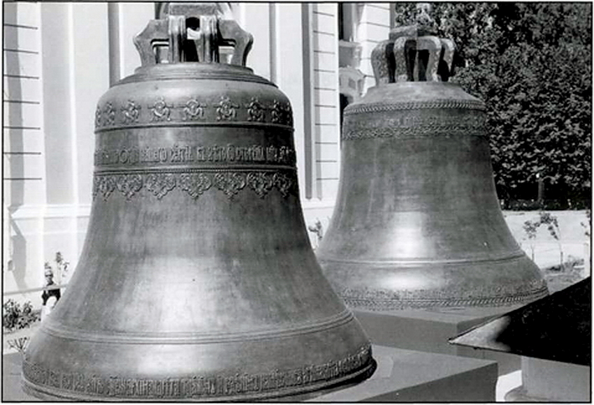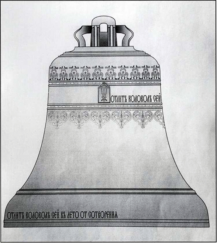 При разработке проекта-реконструкции новых колоколов (ил.17–18) были максимально учтены традиции в отношении веса, сохранения формы тела (профиля) колокола и языка, конструкции ушей и маточника (короны). То же самое относится и к художественному оформлению колоколов. Орнаментальное убранство «Благовестника» и «Первенца» было разработано Обществом церковных звонарей Московской Патриархии во главе с председателем и руководителем звонов Московского Кремля и Храма Христа Спасителя И.В. Коноваловым, а «Царь-колокола» – совместно с братией Троице-Сергиевой Лавры.