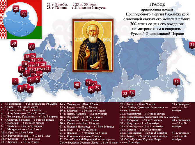 Обновленный график принесения иконы преподобного Сергия в митрополии и епархии Русской Православной Церкви