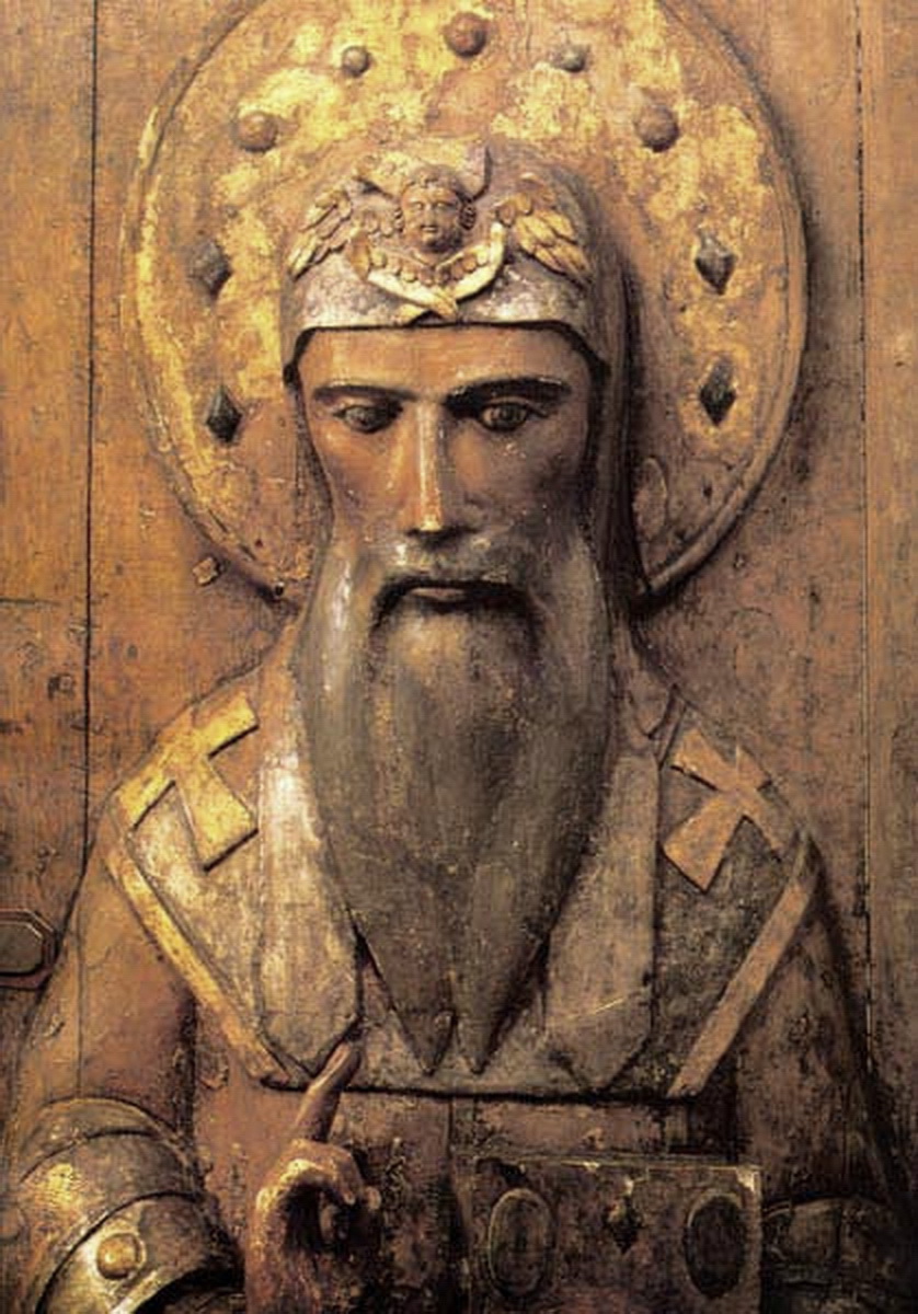 Свт. Феогност, митр. Московский. Деревянная скульптура XVII в.
