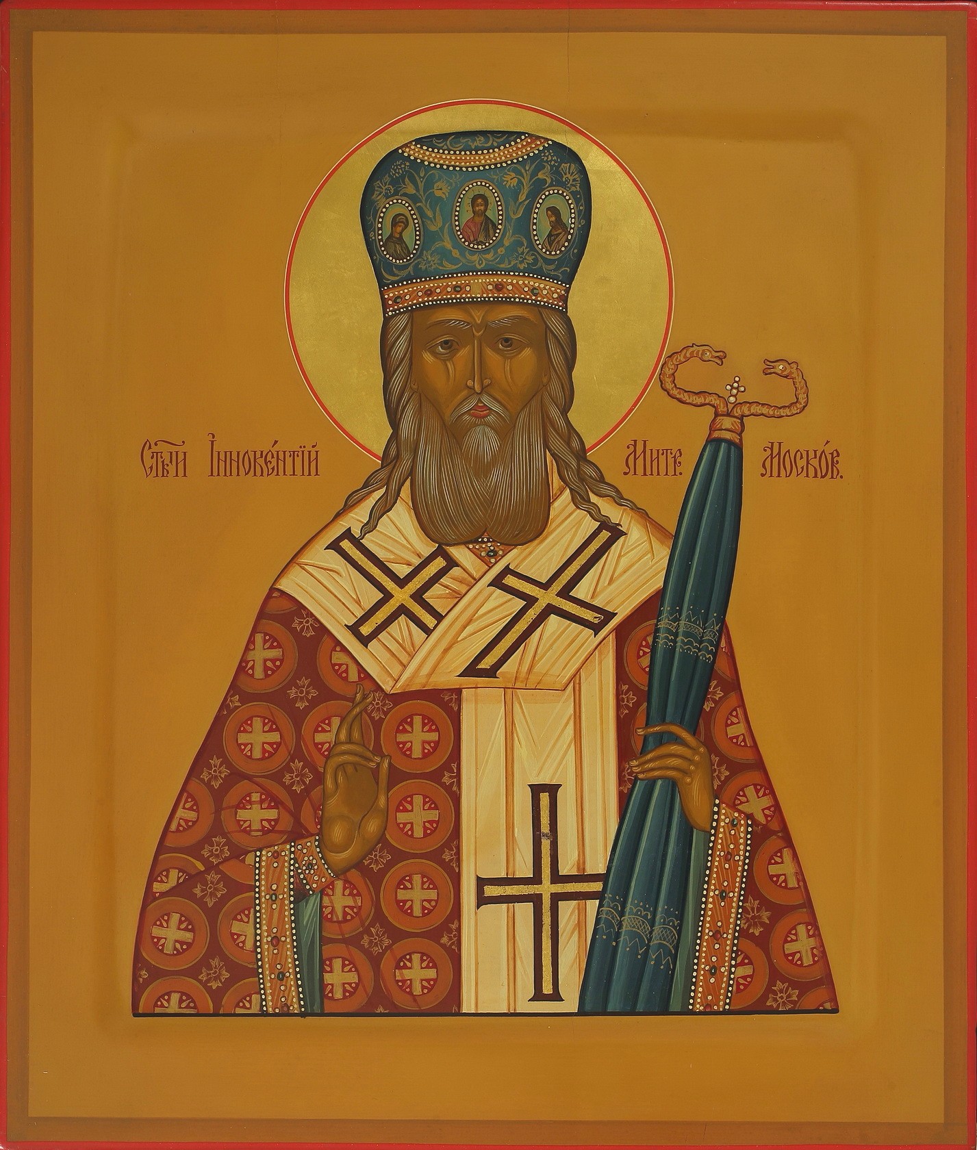 Святитель Иннокентий (в миру Иван Евсеевич Попов-Вениаминов) родился 26 августа 1797 года в Иркутской области в семье пономаря сельской церкви. Окончил Иркутскую духовную семинарию. В 1817 году рукоположен в сан диакона, а четыре года спустя – в сан иерея. Первым местом его служения была церковь Благовещения Пресвятой Богородицы в Иркутске.