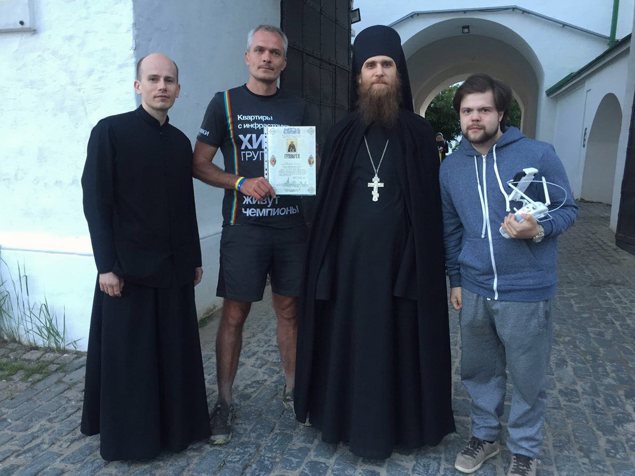 Руководитель информационной службы Троице-Сергиевой Лавры иеромонах Феодор (Силицкий) поздравил Дмитрия Ерохина с установленным рекордом и сопроводил марафонца в Троицкий собор обители к святым мощам преподобного Сергия Радонежского.
