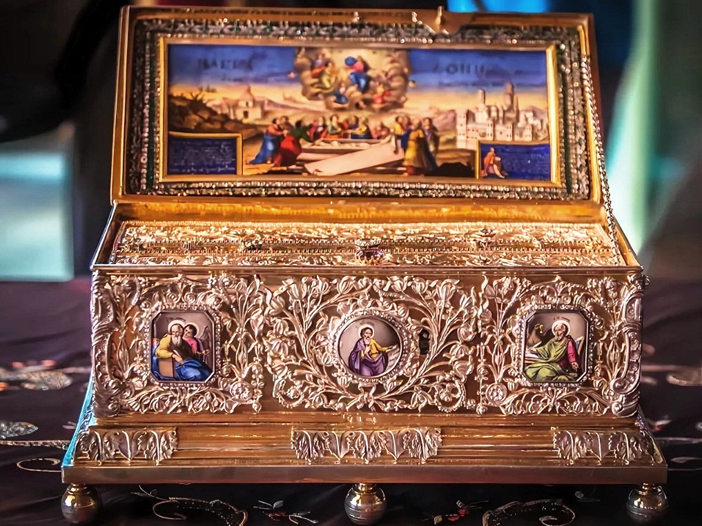 В Троице-Сергиевой Лавре в Серапионовой палате также хранится и доступен для поклонения верующих ковчег с частицей ризы Пресвятой Богородицы.