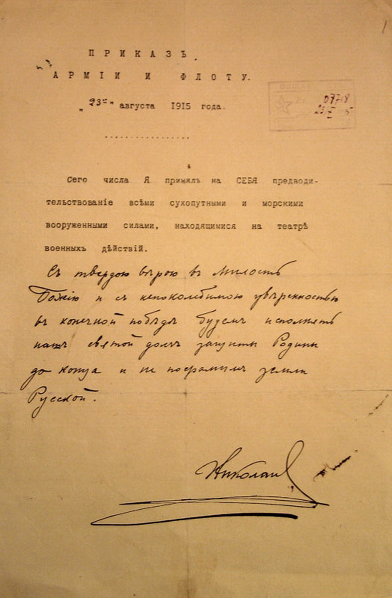 [27] Государь вступил в это командование 23 августа 1915 года.