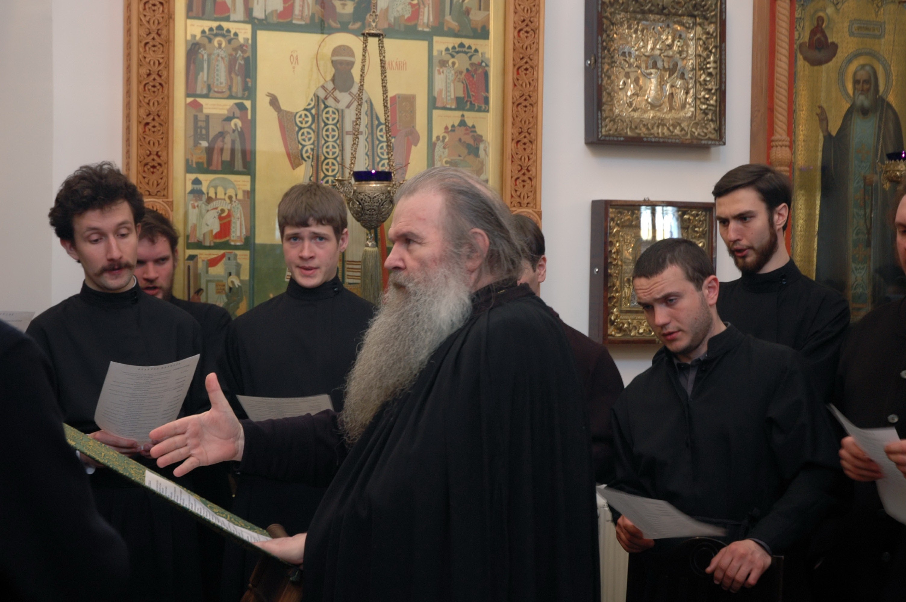 В Лавре веками бережно сохраняется Знаменное пение, а в XVIII веке Лаврские напевы как особенно значимые вошли в состав рукописного Ирмология (1748 год). Все это важно и интересно, так же, как, например, изучение прекрасного архитектурного ансамбля Лавры, история формирования которого насчитывает более 500 лет. Вместе с тем, если представить на мгновение, что все это великолепие лишается Преподобного, в один миг остается все – прекрасные храмы, величественные стены, старинные корпуса, но нет святого Сергия, его жития, подвигов, благодатного покрова, то все моментально теряет свой смысл. Это происходит потому, что сущность всего в Лавре – это не архитектурные формы зданий, пусть они и важны, а сам Преподобный, Основатель обители, ее Игумен и Душа, по настоящий день непрестанно пребывающий со своей братией. Так получается и с певческой тематикой. Важны ноты, традиции, музыкальные черты, но без тружеников, без великих подвижников этой нивы, все это стало бы мертвым, да и, пожалуй, не смогло бы родиться на свет Божий. Именно поэтому имеет смысл рассказать о певческой традиции Лавры через знакомство с личным, человеческим фактором. В первую очередь следует вспомнить уникальную личность, архимандрита Матфея (Мормыля) – известного регента Троице-Сергиевой Лавры (|2009), благодаря которому традиция ее пения была воссоздана, обогащена, обрела свое новое дыхание и бытие.