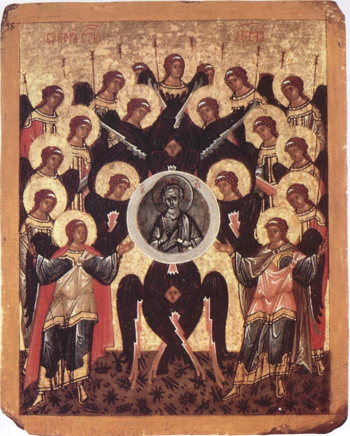 Собор святых Ангелов. Двусторонняя икона-таблетка около 1500 года.