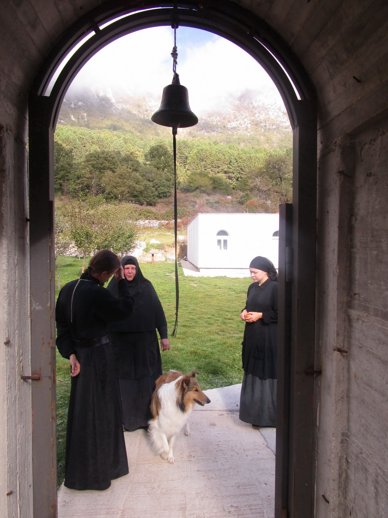 Гостеприимные сестры встретили паломников из России колокольным звоном. Со слов игумении, перед приездом "Ночных волков" на Румии всю ночь выли волки настоящие, которые обычно не подходят близко к монастырю: "Приветствовали мотопаломников", - улыбаясь, говорит матушка Теодора, - "вы - первая ласточка из Сергиевой Лавры!"
