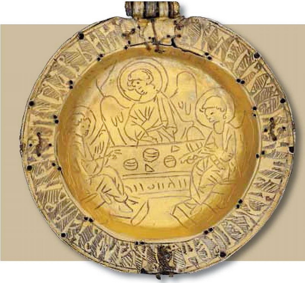 Как уже говорилось, тема Святой Троицы предстала главенствующей в экспозиции в силу неразрывной связи с личностью Преподобного Сергия как ее неустанного «служителя». На выставке было собрано более 60 произведений, включая драгоценные панагии второй четверти XV века - из Троице-Сергиевой Лавры (кат. 83) и Введенского Владычного монастыря в Серпухове (кат. 84). Соответственно, первая хранится в Сергиево-Посадском музее-заповеднике, вторая - в Серпуховском историко-художественном музее.