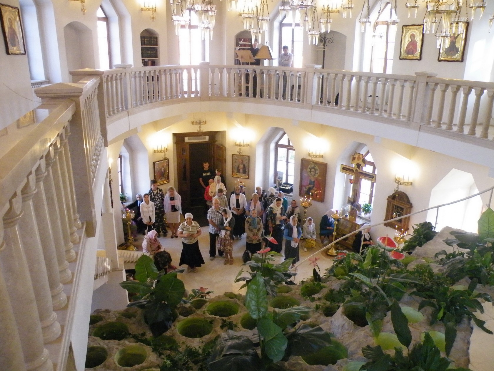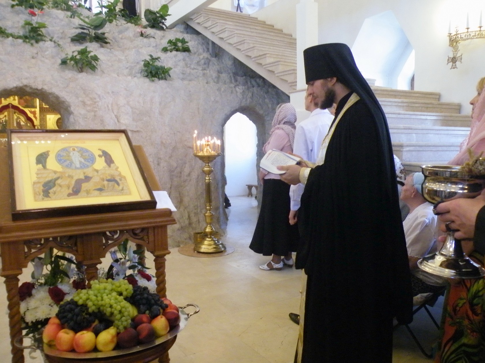 Праздничная служба в храме закончилась водосвятным молебном. В этот день в церкви исторически освящают «начатки плодов». Первые плоды нового урожая приносили к алтарю и в Ветхом Завете, по Закону Моисееву: "Начатки плодов земли твоей приноси в дом Господа, Бога твоего" (Исх. 23, 19). Завершился праздник праздничной трапезой в небольшом, но уютном дворе среди цветов и газонов. Перед уходом все, кто смог остаться на трапезу, сфотографировались на память.