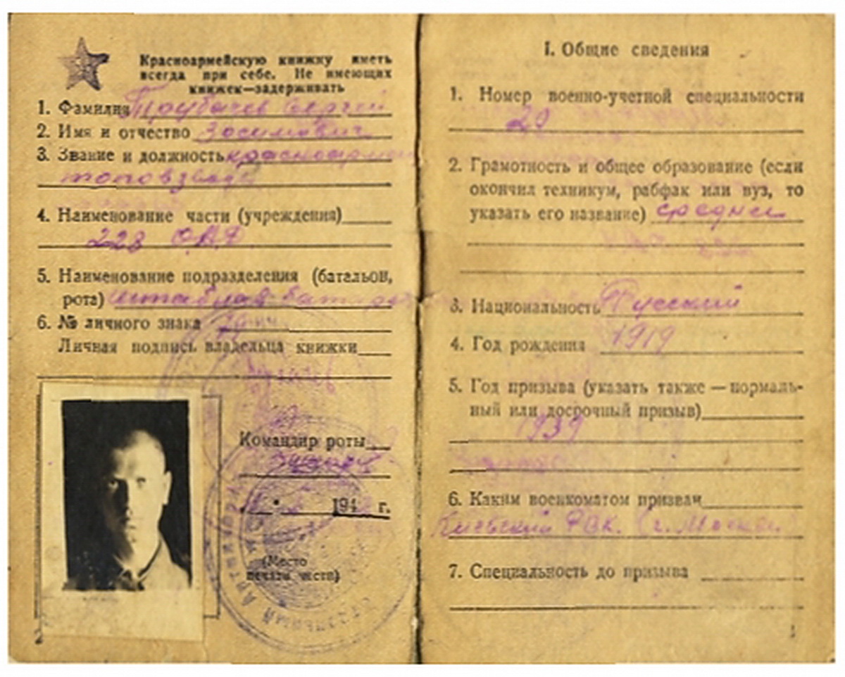 Красноармейская книжка С.З. Трубачева. 1939