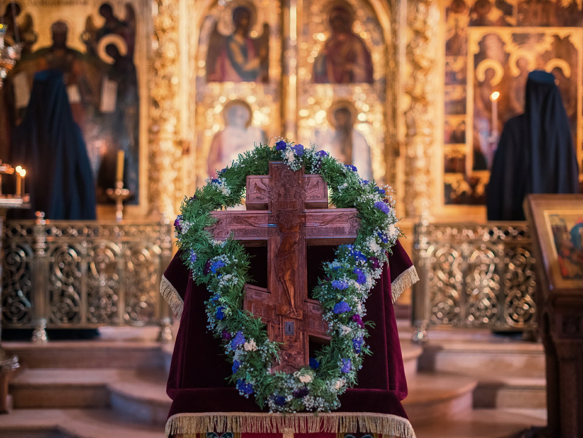 Особенность 3-го великопостного воскресенья составляет вынос и поклонение Кресту. Историю его установления объясняет нам один из памятников XIII в. Иерусалимской Патриаршей библиотеки. «Третье поклонение, − говорит он (1-е поклонение бывает 14 сентября и 2-е − 1 августа), − Святому Древу бывает в середине поста в память перенесения его из Апамеи при имп. Иустине. Эта часть Древа представляет собой подножие Христа. Еп. Апамейский Алфий принес ее в свой город из Иерусалима, получив ее от своего брата, архиеп. Иерусалимского. Другие же сообщают, что с блаженной Еленой отправились (для отыскания Креста Господня) многие епископы, в том числе и епископ Апамеи. Он выпросил у царицы часть честного древа для церкви, которую он намеревался построить, строить, и, получив, отнес ее в Апамею. Когда она была открыта при Иустине, то одна часть ее была оставлена на месте, а другая отнесена к царю» [9]. При каком имп. Иустине имело место это событие − Иустине I (518−527) или Иустине II (565−578), − памятник не говорит. Событие это получило значение общецерковного праздника, как объясняет синаксарь этого дня: «Понеже бо четыредесятодневным постом образом некиим и мы распинаемся... предлагается честный и животворящий крест, яко убо прохлаждая и утверждая нас, и воспоминая нам страсти Господа нашего Иисуса Христа и утешая».
