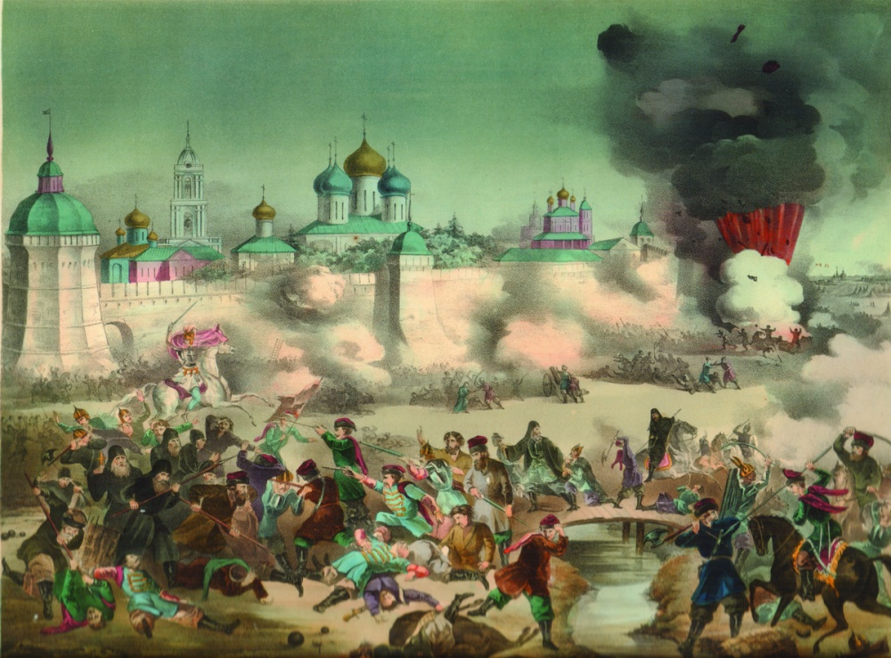 События Смутного времени особо возвысили историческое значение Троице-Сергиева монастыря. В это трудное для русского народа время обитель Преподобного Сергия явилась оплотом его гражданской и религиозной свободы. С момента появления Лжедмитрия II троицкие иноки стояли на стороне законной власти и призывали народ твердо противиться врагам. Поэтому польский воевода Ян Сапега, убеждая самозванца захватить Троицкий монастырь, говорил ему: «О царю великий Димитрий Иванович! Доколе стужают твоему благородству граворонове сии? Не токмо убо на путех вестников наших преемлют, но наипаче же повсюду имеют многи советники и вся грады развращают; и всех всяко укрепляют, еже не покорятися величеству твоему... но служити учат царю Шуйскому. Да повелит твое благородие всяко смирити сих; и аще не покорятся, то рассыплем в воздух прахом вся жилища их». [7]