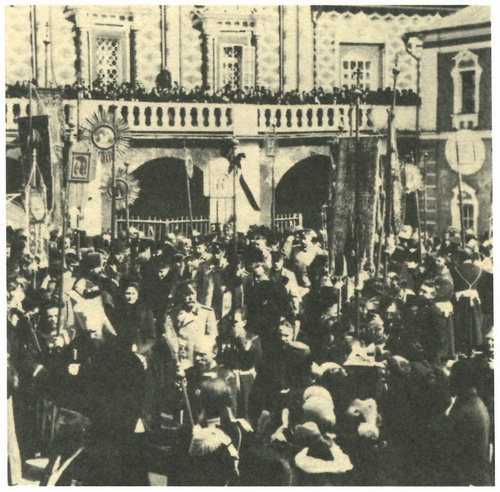 Встреча императора Александра III перед Святыми воротами Лавры.