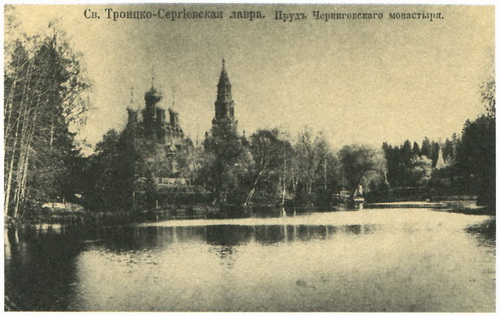 Гефсиманский скит, располагавшийся неподалеку от Вифанского монастыря, славился древней деревянной Успенской церковью XVII в., перевезенной из села Подсосенья. Он отличался и своим строгим уставом: женщины, например, допускались в скит только один раз в году – на праздник Успения Богородицы. Особенно славился скит своими пещерами, расположенными отдельно, на противоположной от скита стороне Корбушинского пруда. В центре пещерного отделения располагалась небольшая подземная церковь во имя Михаила Архангела, в которой хранилась писанная на полотне чудотворная икона Черниговской Богоматери. Необычная церковь и чудотворная икона привлекали огромное количество богомольцев. По этой причине в 1886–1893 гг. над пещерами был возведен вместительный каменный храм во имя Иконы Черниговской Божией Матери, а неподалеку от него в 1895–1900 гг. построена колокольня, ненамного уступающая по высоте лаврской.